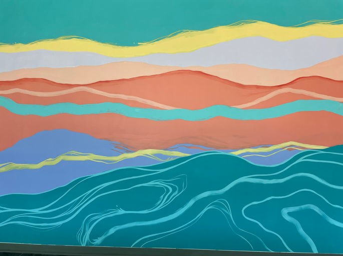 Abstract mountain-scape mural for a multipurpose room in a Facebook data center.